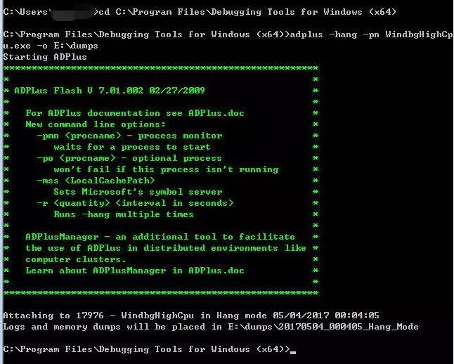 2、利用 WinDbg 的 adplus 获取 Dump 文件,这样获取的是 FullDump