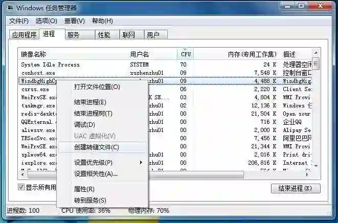 1、通过【任务管理器】获取 Dump 文件,这样获取的是 MinDump