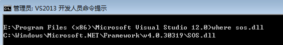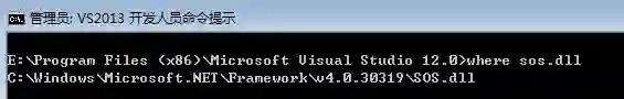 然后,在打开的 VS 命令行中输入 where sos.dll,使获得 SOS 的位置和版本: