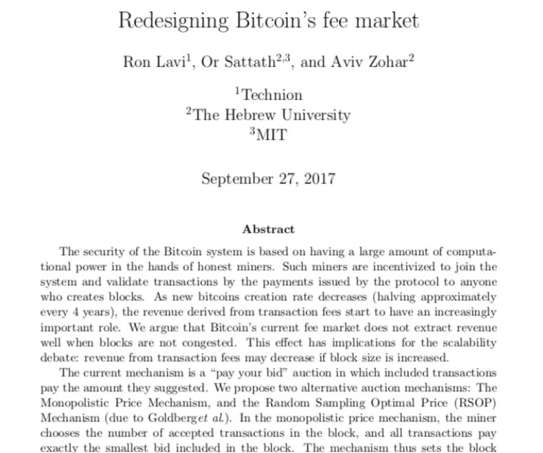[2] Ron Lavi, Or Sattath, Aviv Zohar,“Redesigning Bitcoin's fee market”Sep 26, 2017, https://arxiv.org/abs/1709.08881