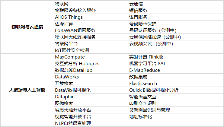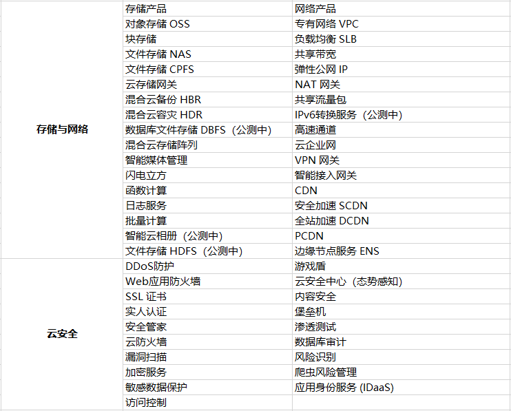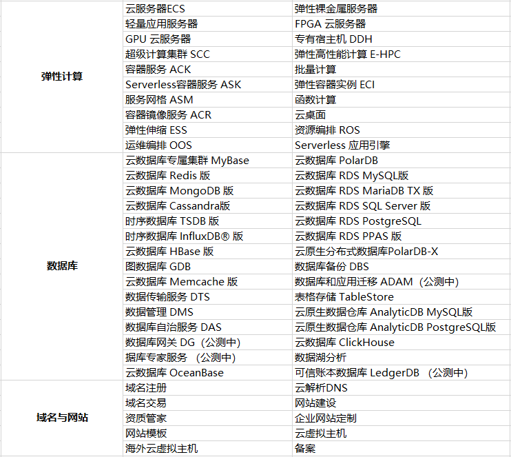 小枣君以目前国内某云计算服务商所提供的服务为例,整理了一个产品表格,如下: