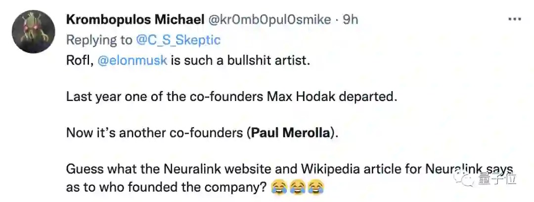 除此之外,另一位出走的联合创始人那边,也被曝出来对Neuralink并不利好的消息。