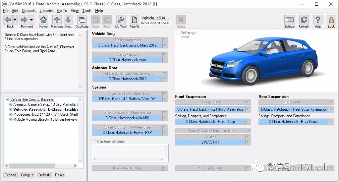 CarSim是Mechanical Simulation Corporation推出的一款整车仿真软件,主要从整车角度进行仿真。这个软件比较“傻瓜化”,其本质上是一个模型库+参数库+求解器+后处理工具+配置界面。也就是说,这个仿真软件自身已经自带了相当数量的模型,并且这些模型都有一些“比较靠谱”的参数,用户免去了繁杂建模和调参数的过程,只要将已有模型“拼”在一起,调整参数即可进行仿真。