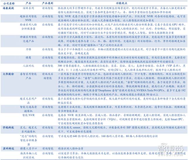 具体到供应端来看,目前主流安防厂商的人工智能产品包括前端(摄像头)和后端(服务器)两类。