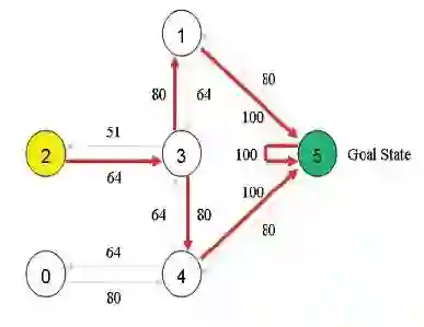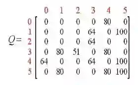 另外,将衰减系数γ设为0.8。Q表初始化为一个5×5的全0矩阵。每次这样更新,最终Q表会收敛到一个矩阵。