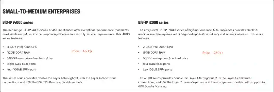 主流的负载均衡器有很多,大致分为两类,商业和开源。商业负载均衡代表产品有 F5 和 A10,它们的典型特征是运行稳定,功能齐全,但价格偏高,性能有限。例如 F5 中端产品 配置 4core CPU-32G mem-1G net bandwidth 的,应对如今的互联网的海量数据转发场景,根本无法应对。价格又偏高,低端 BIG-IP I2000 系列是 25 万 +,中端 BGP-IP i4000 系列是 45 万 +。性价比极低。