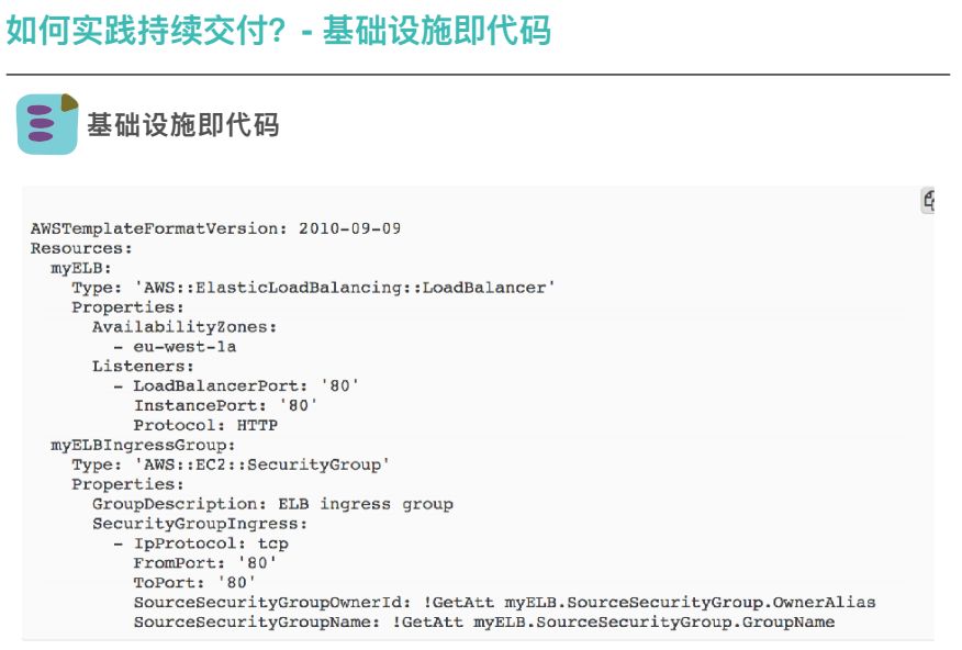 基础设施即代码,通过代码来定义计算机和网络基础设施的方法,可以应用于任何软件系统中,这样的代码的好处是可审查、可重用而且符合测试管理,完全遵从持续交付的原则。