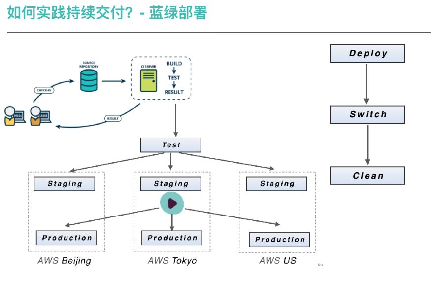 对比之前讲到的部署流程,基于AWS的跨区域部署在流程上有哪些区别?打包跑测试的流程几乎都一样,主要是部署不一样。