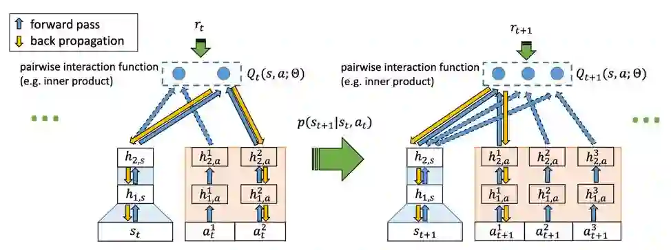 对此,我们需要考虑的是,如何设计更好的对话策略网络,使得系统能够快速的扩展新的动作。首先的尝试来自微软 [21],他们试图通过改变经典的 DQN 结构来实现系统在不受限动作空间上的增强学习。