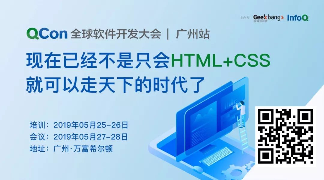 更多大前端、移动开发、编程语言相关实践领域尽在 QCon 广州 2019,感兴趣的同学抓紧时间向 Boss 申请报名,有任何问题请联系小助手鱼丸,电话:13269078023 (微信同)。扫描下方二维码或点击阅读原文,提前 get 干货信息!