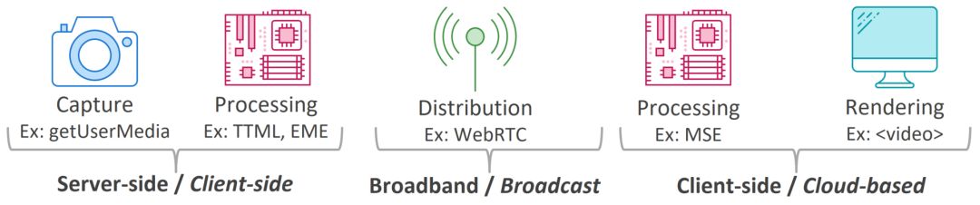 WebRTC 只是 Web 视频体验其中的一部分,从视频的前端的生产 / 采集,到传输 / 编解码,更完整的图示如下: