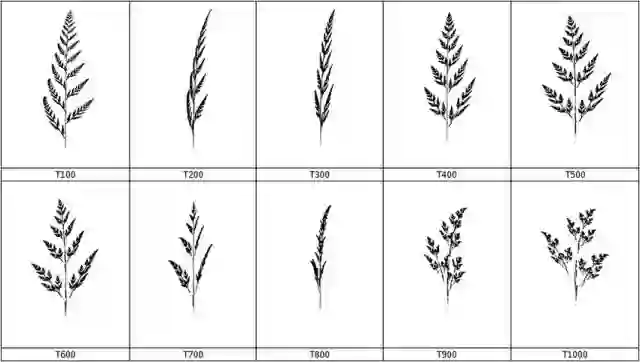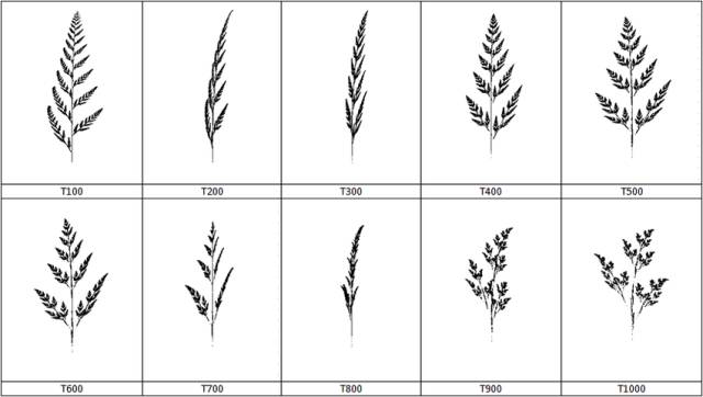 稍微修改一下参数,可以得到各种蕨类植物的叶片: