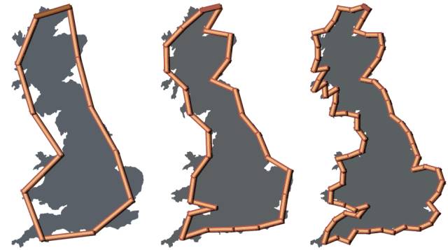 英国海岸线的长度有多长:用越细的尺度测量海岸线,得到的总长度越大,直到无穷