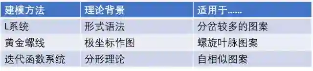 看了许多奇特的植物模拟图像,相比读者们已经大开眼界了。一饱眼福之后我们来回味一下这篇文章介绍的几种植物建模方法,大致总结如下:
