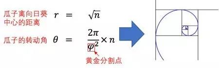 黄金分割点又是斐波拉契数列相邻项的渐近比值,而葵瓜子的排列规律可以用斐波拉契数列描述