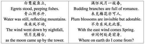 计算语言学的例子——用递归神经网络(RNN)实现的AI写诗,引用自文献[10]。尽管诗句套路较为单一,但已有以假乱真的功力了。