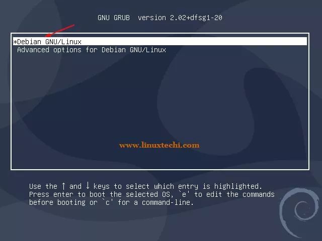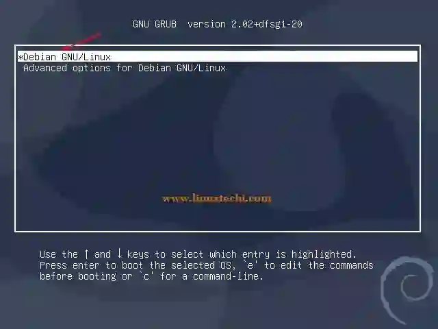 选择第一个选项 “Debian GNU/Linux” 并敲击回车键。