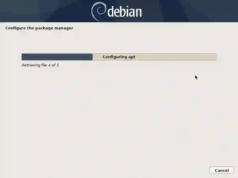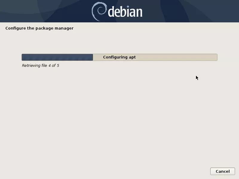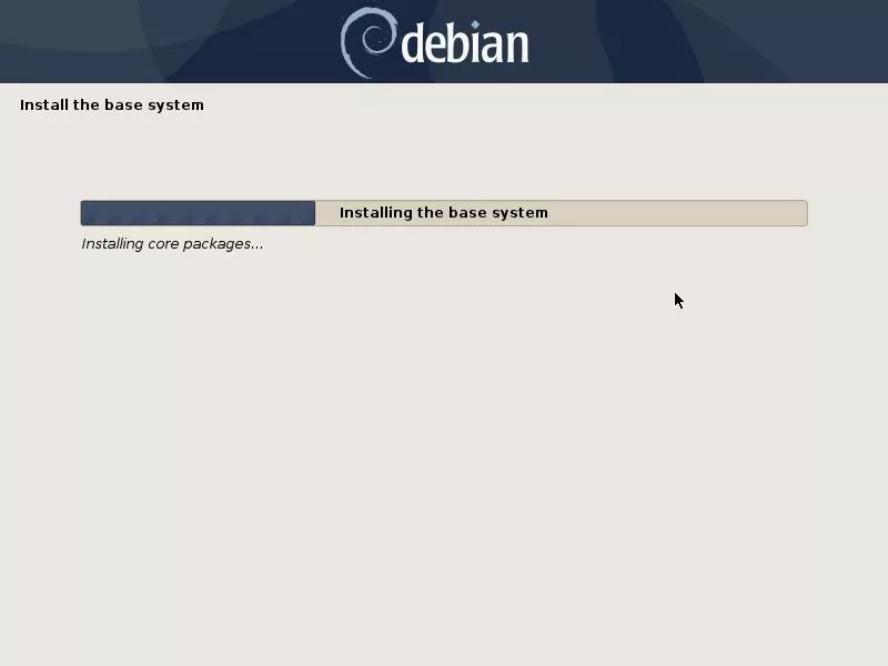 在这一步骤中,Debian 10 的安装已经开始,并正在进行中,