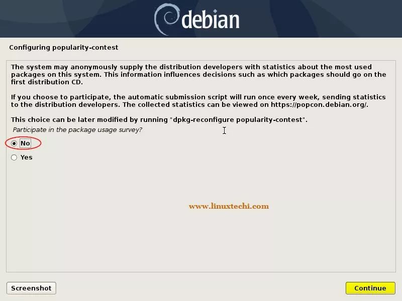 在接下来的屏幕中,如果你想配置基于网络的软件包管理器选择 “yes” ,但是为了使这个方式工作,要确保你的系统连接到了网络,否则选择 “No”。