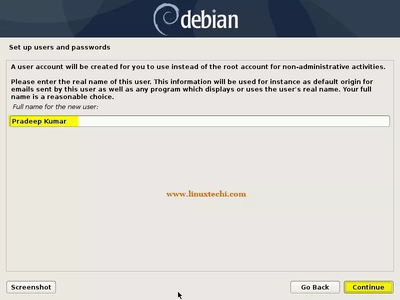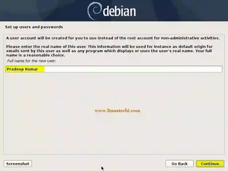 在这个步骤中,你将被提示指定本地用户具体信息,如完整的姓名、用户名和密码,