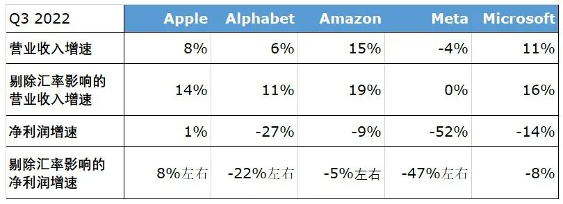 以苹果、谷歌、亚马逊、Meta、微软五巨头为代表的美国科技公司(包括但不限于互联网公司)已经全部公布了2022年第三季度财报。