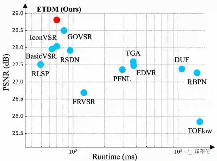 本文是快手与大连理工大学贾旭副教授合作的,包括TGA,RSDN,RRN系列视频超分辨率工作的后续工作。所提出的ETDM在多个公开数据集上取得了不错的结果,以单向循环卷积的结构超过了SOTA的EDVR,GOVSR,BasicVSR等方法。