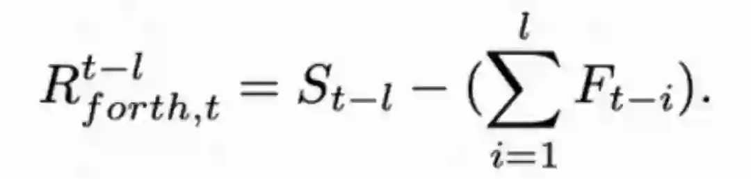 我们进一步发现,时间残差图具备累积转移特性,即当前时刻到任意时刻的时间转移都可以用这段时间内每个相邻帧的时序残差图来累积得到。于是,自然地将传播过程进阶扩展到任意的时间顺序上。下式展示了将第t-l个时刻的结果传递到当前时刻: