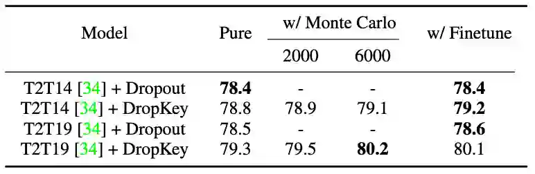 该论文创新性地提出了一种用于 ViT 的正则化器,用于缓解 ViT 的过拟合问题。与已有的正则化器相比,该方法可以通过简单地将 Key 置为 drop 对象,从而为注意力层提供平滑的注意力分布。另外,该论文还提出了一种新颖的 drop 概率设置策略,成功地在有效缓解过拟合的同时稳定训练过程。最后,该论文还探索了结构化 drop 方式对模型的性能影响。