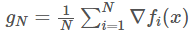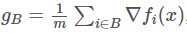 。其中,B⊆{1,2,…,N} 是一个大小为 m 的 mini-batch。尽管 g_N 本身就是一个关于梯度 ∇f(x) 的带噪声估计,结果表明,mini-batch 抽样可以生成带有有趣的协方差结构的估计。