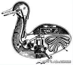 1738年,法国技师杰克·戴·瓦克逊发明了一只机器鸭,它会嘎嘎叫,会游泳和喝水,还会进食和排泄。这只器鸭主要被用于医学研究。