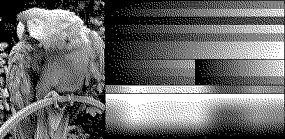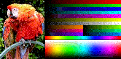 不过这里的一些图像只用了很少的颜色,因为它们使用了一个叫空间抖动的技术。这允许它们以很少的颜色仍然能表示出非常好的图像。许多早期的操作系统就使用了这种技术。