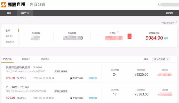 1. 注册新榜网站用户,在付费内容分销平台首页领取分销链接