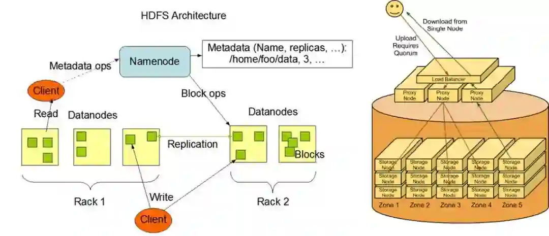 对于数据的存储,一台机器的文件系统肯定是放不下了,所以需要一个很大的分布式文件系统来做这件事情,把多台机器的硬盘打成一块大的文件系统。
