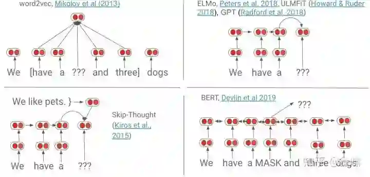 第三点中Next Sentence Prediction的“巨人肩膀”是Skip-gram,Skip-thoughts和Quick-thoughts等工作