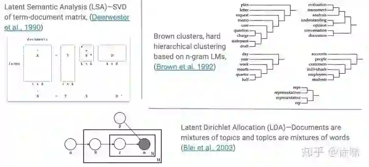 PV-DM的全称是 Distributed Memory Model of Paragraph Vectors,和CBOW类似,也是通过上下文预测下一个词,不过在输入层的时候,同时也维护了一个文档ID映射到一个向量的look-up table,模型的目的便是将当前文档的向量以及上下文向量联合输入模型,并让模型预测下一个词,训练结束后,对于现有的文档,便可以直接通过查表的方式快速得到该文档的向量,而对于新的一篇文档,那么则需要将已有的look-up table添加相应的列,然后重新走一遍训练流程,只不过此时固定好其他的参数,只调整look-up table,收敛后便可以得到新文档对应的向量了。PV-DBOW的全称则是Distributed Bag of Words version of Paragraph Vector,和Skip-gram类似,通过文档来预测文档内的词,训练的时候,随机采样一些文本片段,然后再从这个片段中采样一个词,让PV-DBOW模型来预测这个词,以此分类任务作为训练方法,说白了,本质上和Skip-gram是一样的。这个方法有个致命的弱点,就是为了获取新文档的向量,还得继续走一遍训练流程,并且由于模型主要是针对文档向量预测词向量的过程进行建模,其实很难去表征词语之间的更丰富的语义结构,所以这两种获取文档向量的方法都未能大规模应用开来。