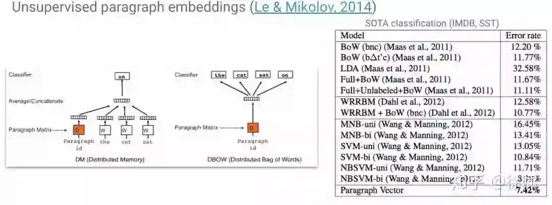 无监督篇章嵌入 (Le & Mikolov, 2014)