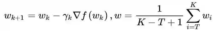 其中 T 是一个阈值,而 K 则是总共的迭代次数,这个式子的意思就是把迭代到第T次之后,对该参数在其后的第 T 轮到最后一轮之间的所有值求平均,从而得到最后模型的该参数值,而相应的,普通的SGD则是直接取作为最后模型的参数值。