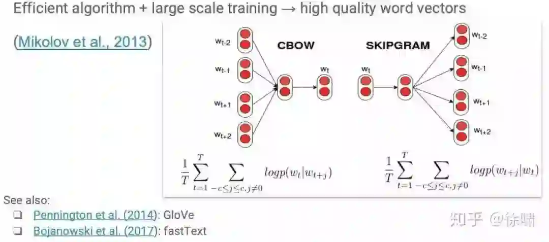 利用分布假设进行训练:“You shall know a word by the company it keeps”(Firth, 1957),通常形式化为训练某种语言模型的变体