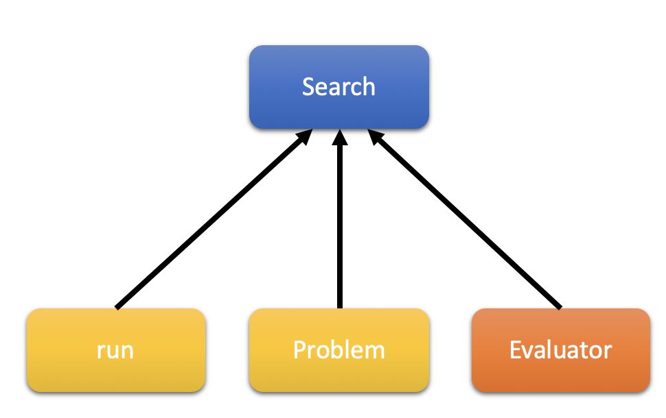 评估者(evaluator):一组有助于在不同系统和不同情况下运行搜索的对象,例如快速和轻型实验或长时间和重度运行。