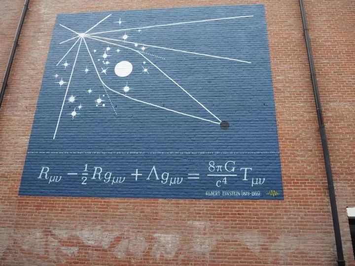 爱因斯坦场方程,是一个集科学的洞察与诗歌的美妙于一身的公式。只是我们很少像赞美莎士比亚的作品一样去歌颂哪个数学公式。不过,荷兰的莱顿大学城正将物理学家和天文学家的一些里程碑式的重要公式绘制在城市的墙壁上,希望能为大众提供一个了解并爱上这些科学瑰宝的机会。
