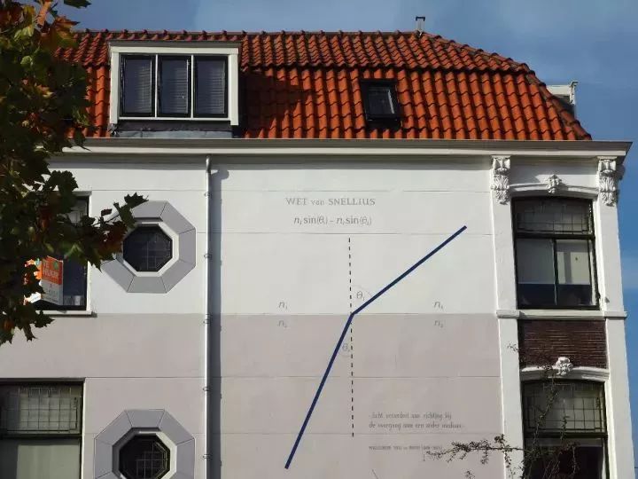 在那之后,莱顿城的房子上又出现了另外两幅科学壁画,分别是荷兰科学家斯涅耳(Willebrord Snellius)的折射定律(又称为斯涅耳定律)和荷兰物理学家洛伦兹(Hendrik Lorentz)的力学方程。