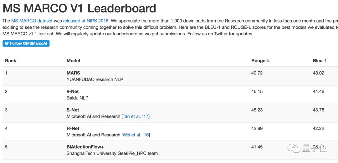 在著名的微软MSMARCO(Microsoft MAchine Reading COmprehension)机器阅读理解测试排行上,现在排名第一的团队,已经悄然变成了猿辅导。