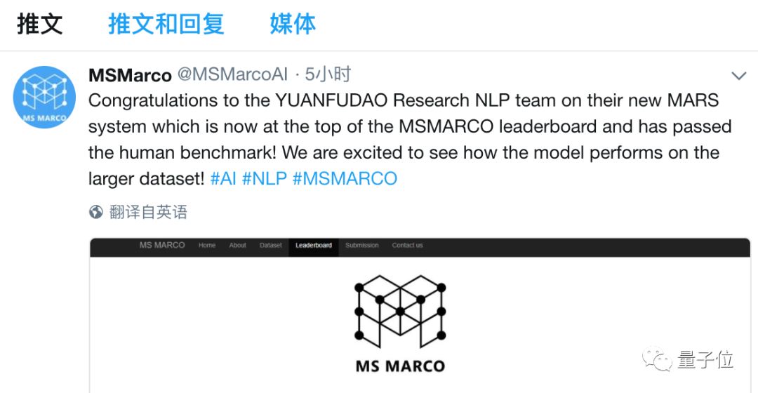 在可评测的指标上,猿辅导此次上传的MARS是MSMarco的数据集上首次超过人类的模型,并且大幅超过第二名百度。根据团队介绍,这个数据集包含微软bing搜索的query以及query对应的top 10的搜索结果,超过人类的意思就是说,给定query和top 10搜索结果,机器找出的答案比普通人找的更准。