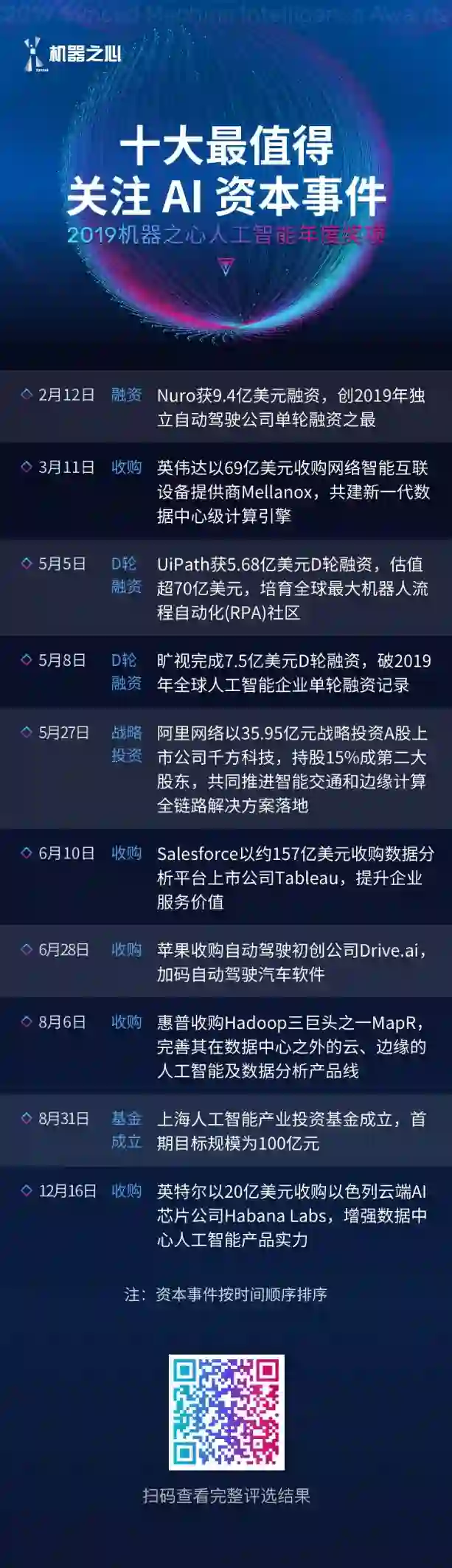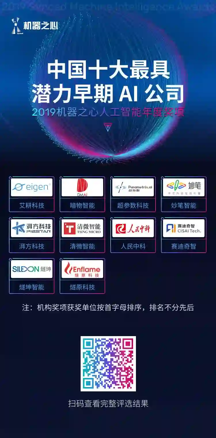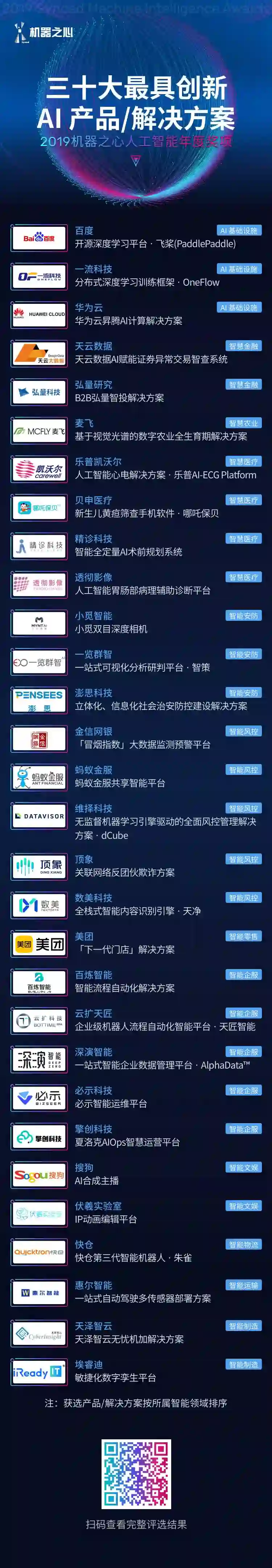 2019机器之心人工智能年度奖项正式公布:关注创业先锋,聚焦产品案例