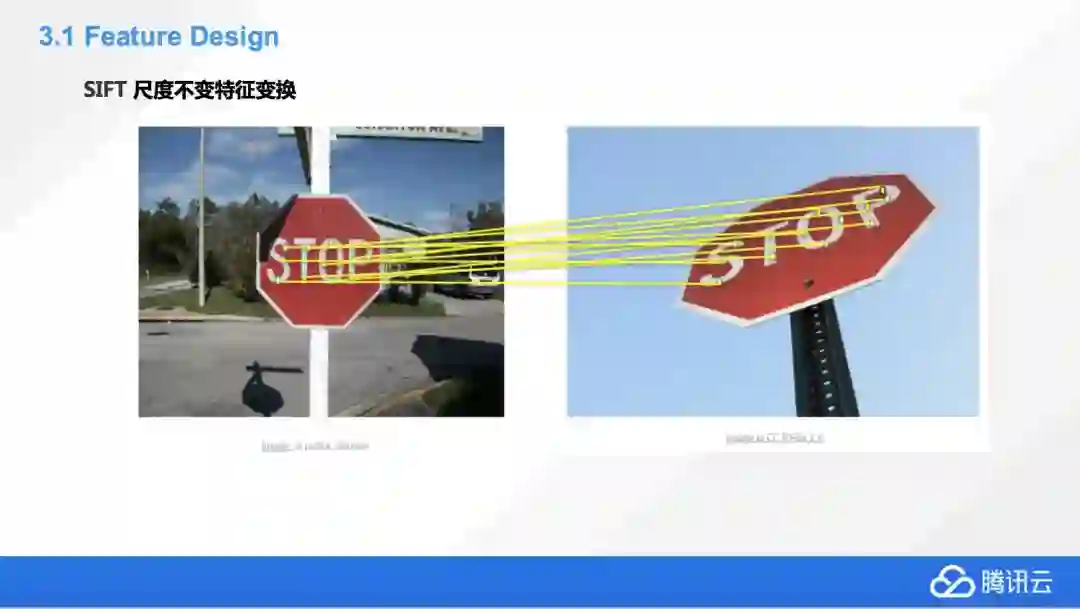 SIFT 尺度不变特征变换,当对象有角度、特征位置的变化时,我们如何去持续的能够知道它们是同样的一个东西,这个就要利用到 SIFT。SIFT 是一种局部检测的特征算法,这个算法是通过求图片中的一些特征点,对图像进行匹配,这是非常老的一个算法,大概在 2000 年时候就提出来了,目前已经是一个常用的非深度学习的一个图像的一种匹配的算法。