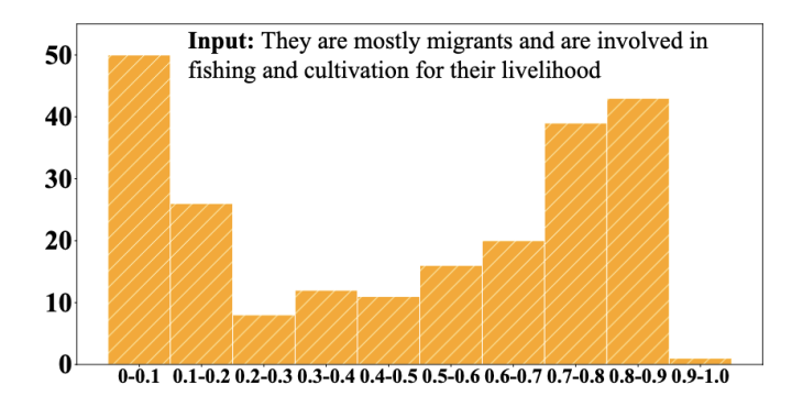 以往的基于对比学习的句表示学习工作大多使用 batch 内数据作为负例或从训练数据中随机采样负例。然而,这类方式可能会造成抽样偏差(sampling bias),导致不恰当的负例(例如假负例或各向异性的负例)被用来学习句表示,这将损害表征空间的对齐性和统一性。上图是 SimCSE 编码的输入句表示与批次内其它样本表示的余弦相似度分布。可以看到,有接近一半的相似度高于 0.7,直接在向量空间中推远这些负例很有可能损害模型的语义表示能力。
