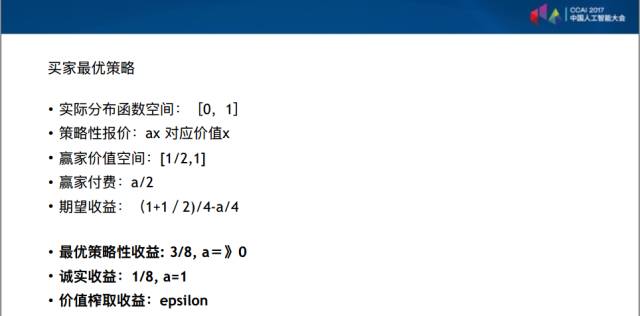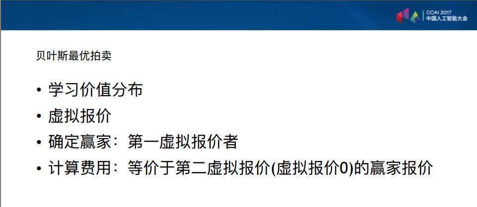 大多数的情况,在互联网的环境下,这个事情都是我们自己做的。在这里我们有一个报价,然后运用一个机制设计来决定卖给你什么,收多少钱。这里,虚拟报价是根据真实报价算出来的一个值。