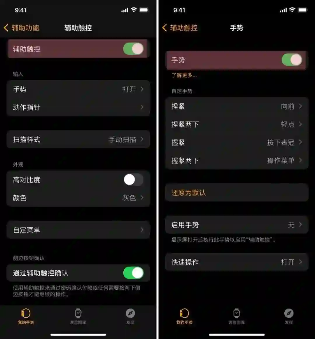 快速操作:是指在各类界面中允许通过「握拳两次」的手势直接点选一个常用选项,而无论该手势原本被设为什么操作。例如,在来电界面,握拳两次可以直接接听;在短信通知界面,握拳两次可以向下滚动预览等。这是一个比较方便的设计,建议开启。
