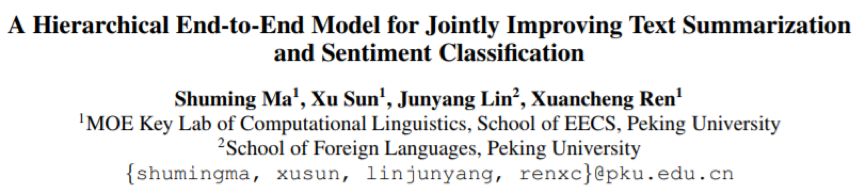 论文:A Hierarchical End-to-End Model for Jointly Improving Text Summarization and Sentiment Classification