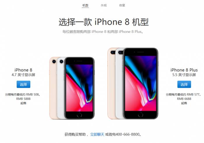 @CnBeta【苹果iPhone 8/8 Plus等新品开始在苹果官网预售】苹果iPhone 8/8 Plus于9月17日下午3:01正式预售,抢购成功的用户将在9月22日陆续收到产品成为首批iPhone 8用户。除了苹果官方的渠道,国内各大电商网站(天猫、京东、苏宁等)也已经上线iPhone 8并提供预约服务,并在9月22日上午开启抢购。售价上,64GB版本的iPhone8为5888元,256GB版本7188元,而64GB的iPhone8 Plus为6688元,256GB版本7988元。